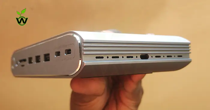 Minisopuru 15-in-1 DisplayLink Laptop Docking Station has a sleek aluminum body just like the previous one and it also feels rugged but a bit heavier this time. The docking station looks premium and this time the port sides are not plain black, these sides are also made of aluminum with fine and shining embossing.