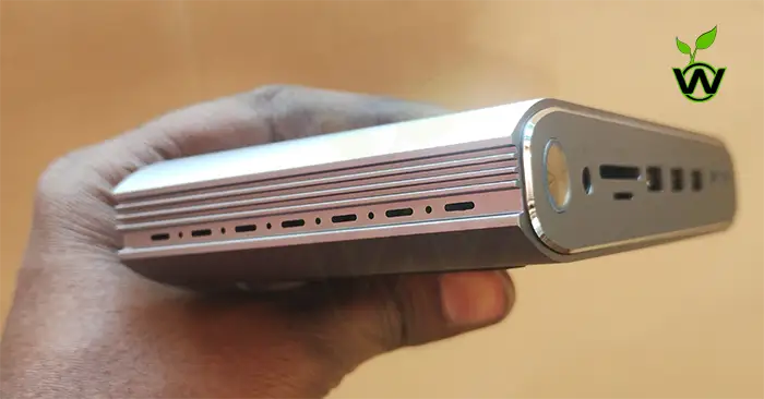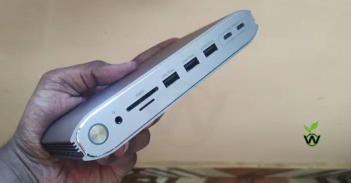 This embossed side shines when light falls. One of these sides now also features a circular power button, which seems elegant. The docking station feels metallic, premium, and robust and it will grab the attention of anyone on your working desk easily.